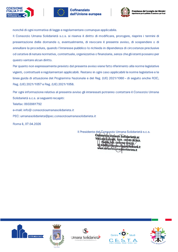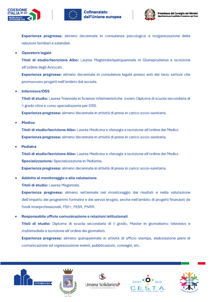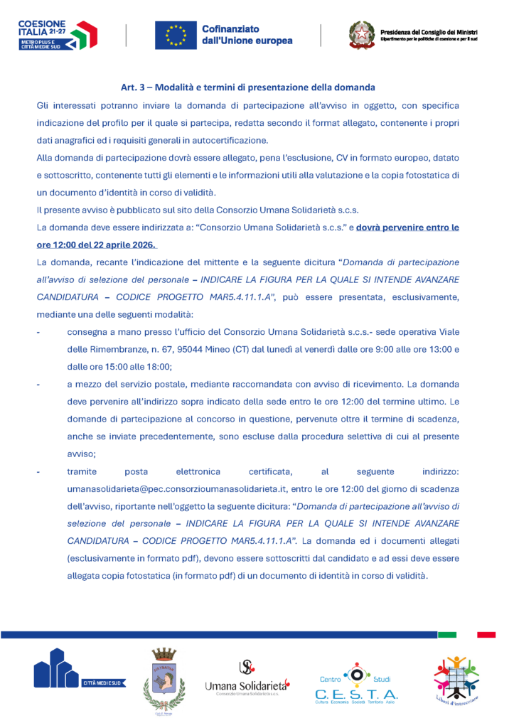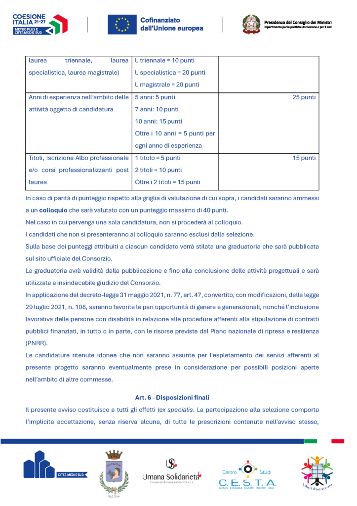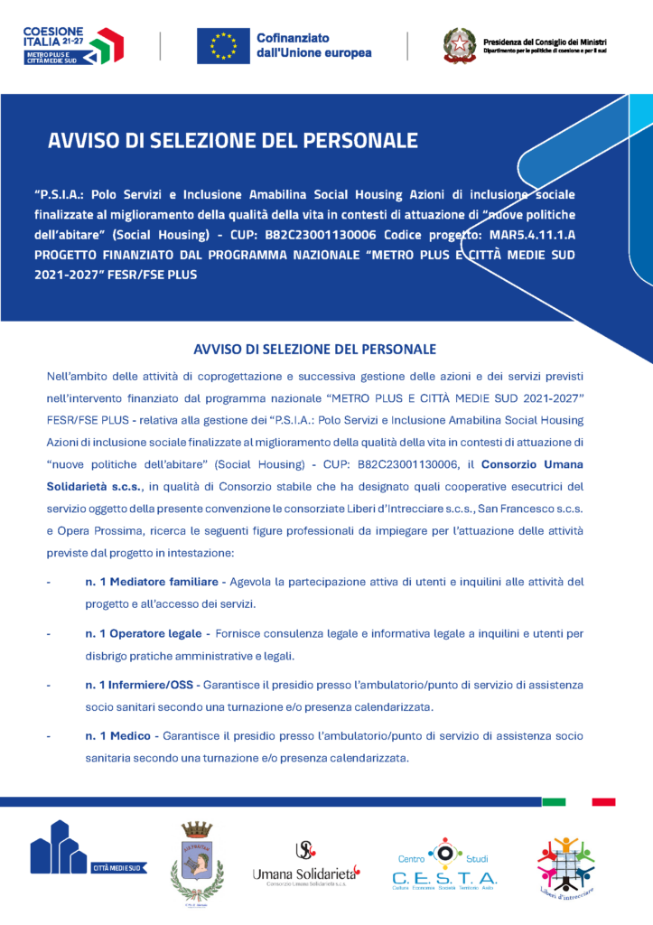 AVVISO DI SELEZIONE DEL PERSONALE – CUP: B82C23001130006 Codice progetto: MAR5.4.11.1.A